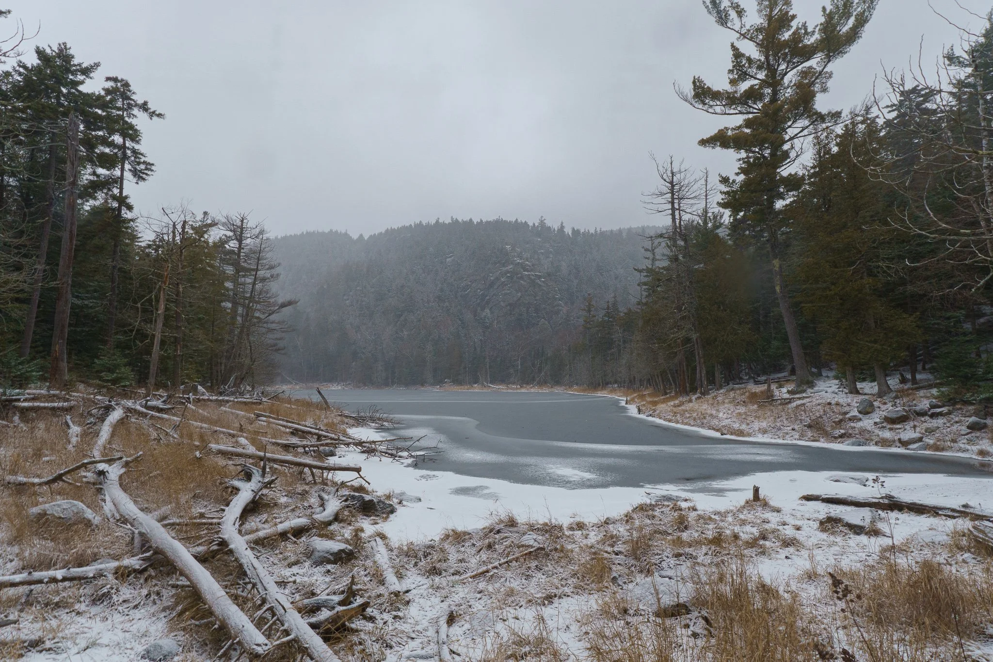 Continuing on, I found my way to the shore of the Giant’s Washbowl, where conditions were not improving. The wind coming off the frozen lake was harsh, and it became difficult to keep my eyes open as the ice crystals stung my face.